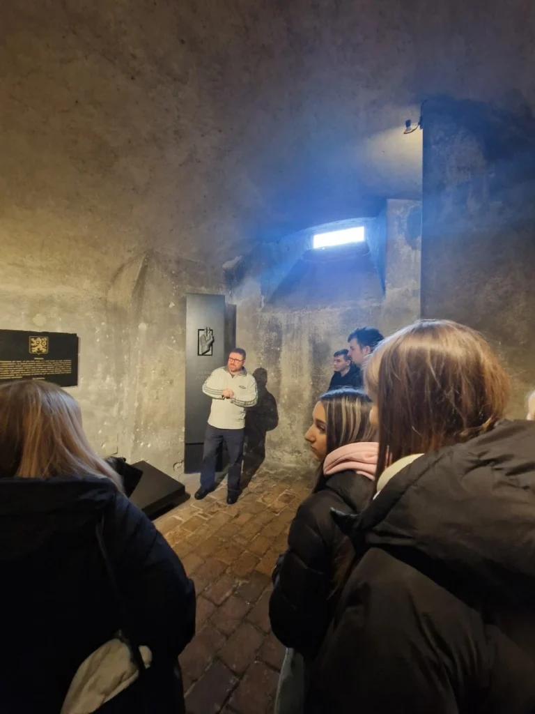 Nejprve jsme zavítali do Národního památníku hrdinů heydrichiády, do krypty v Resslově ulici, kde se 21 nocí ukrývalo sedm parašutistů po atentátu na R. Heydricha, kteří zde 18.6. 1942 svedli svůj poslední boj. Prohlédli jsme si místnost před kryptou, kde se nachází expozice věnovaná operaci Anthorpoid a shlédli jsme film, který nás uvedl do děje v protektorátu. Dostali jsme odborný výklad, vešli jsme do kostela sv. Cyrila a Metoděje a pro každého to byl silný zážitek.