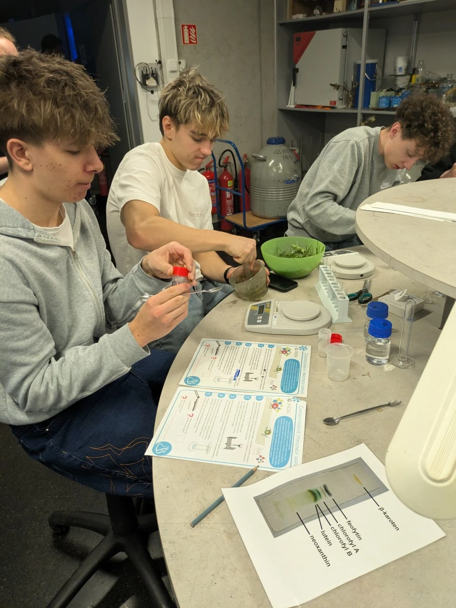 Vyzkoušeli si analytickou metodu titraci a určili obsah vitamínu C v běžně dostupných tabletách, prozkoumali enzymatickou katalýzu a zjistili, co se děje se škrobem v dutině ústní a následně v tenkém střevě, a na závěr izolovali rostlinná barviva z přírodního materiálu a rozdělili je pomocí papírové chromatografie.
