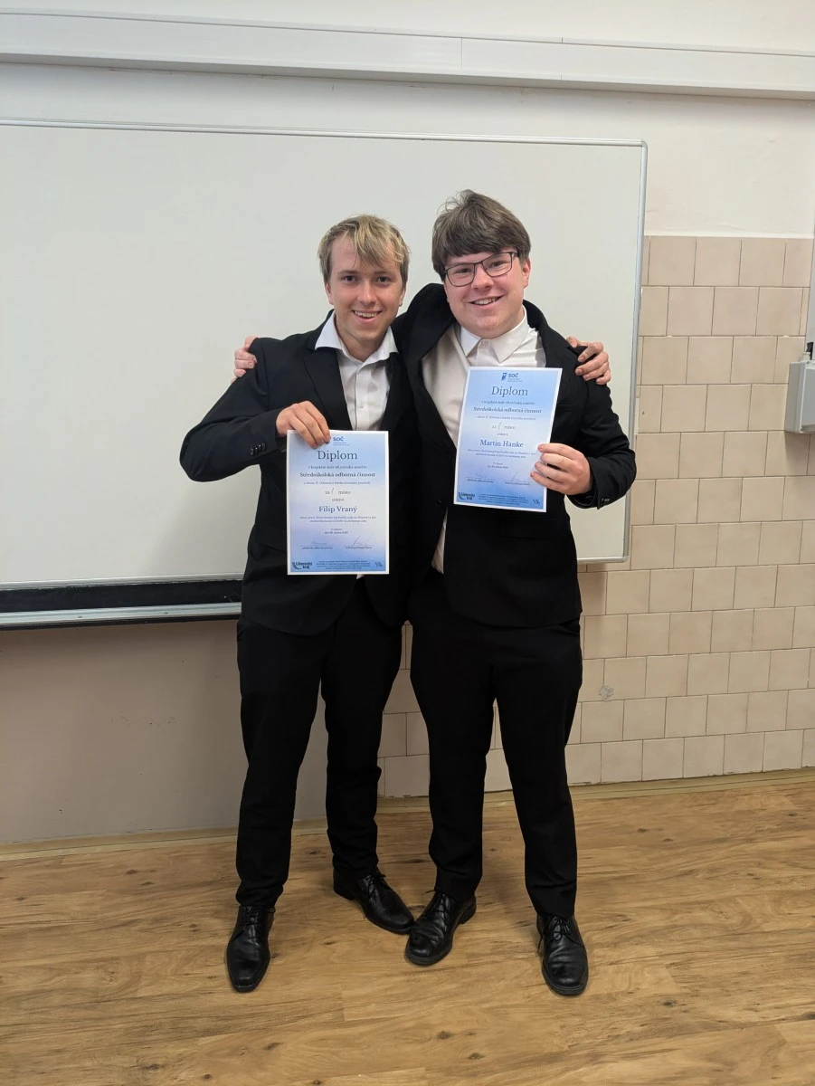 Studenti Martin Hanke a Filip Vraný, oba ze 3. A, zvítězili v krajském kole Středoškolské odborné činnosti (SOČ) a postupují do celostátního kola.