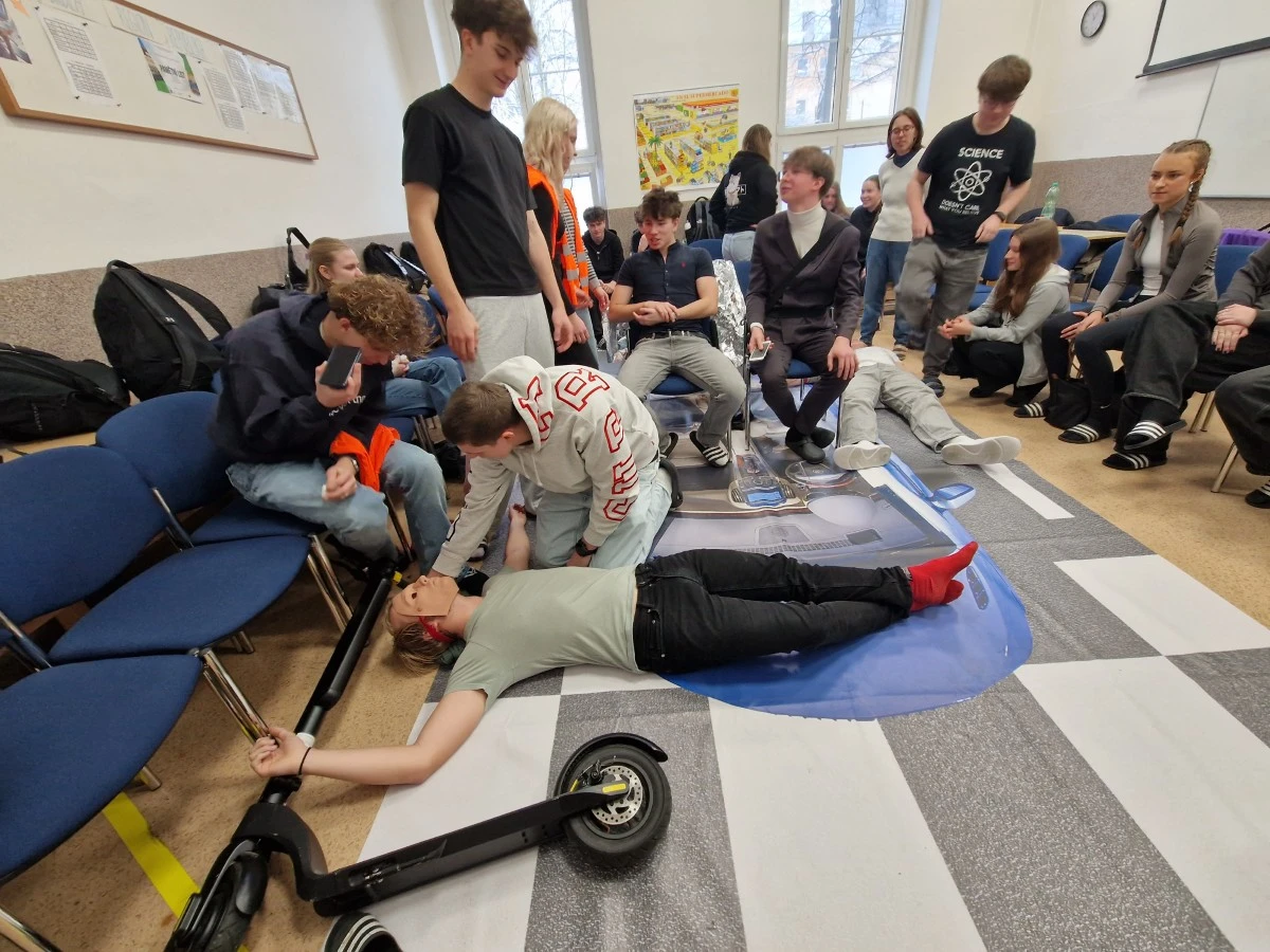 Žáci zažili simulovanou dopravní nehodu, která má základ v reálných událostech. Při ní pomáhali zraněným, měli za úkol rozklíčovat příčiny události a zjistili, že nehodou to nekončí. Neumírej zbytečně! je název programu, který učí mladé lidi ohleduplnosti a kooperaci v silničním provozu.