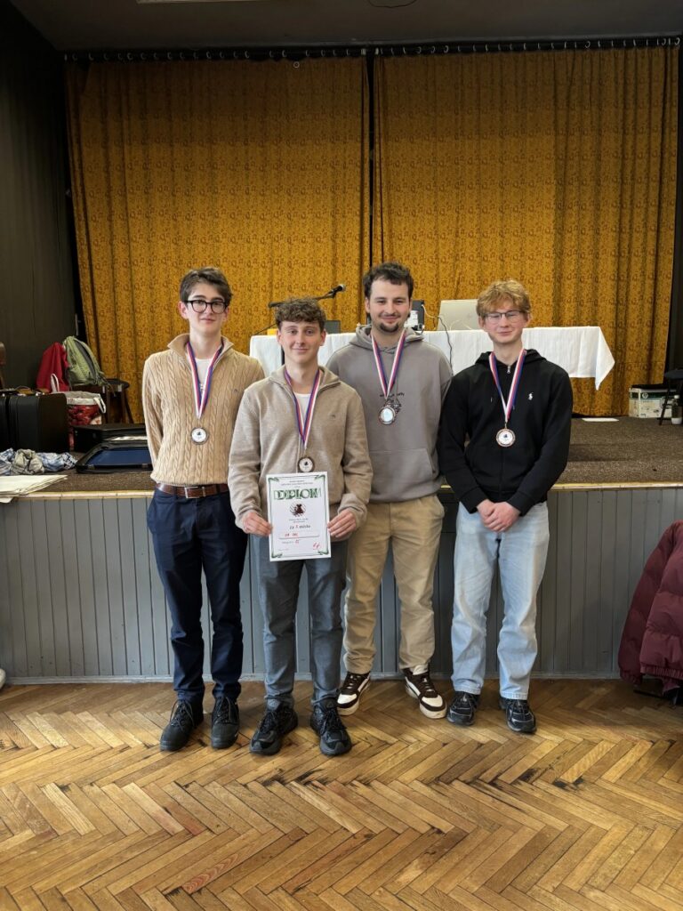 Kluci z naší školy (Honzejk F., Kvíčala J., Vondráček J., Dubský J.) nás skvěle reprezentovali na okresním šachovém turnaji středních škol, který se konal 4. února 2026.